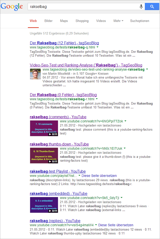- Video-Seo-Test und Ranking-Analyse (“Rakselbag”) (Juli 2012)